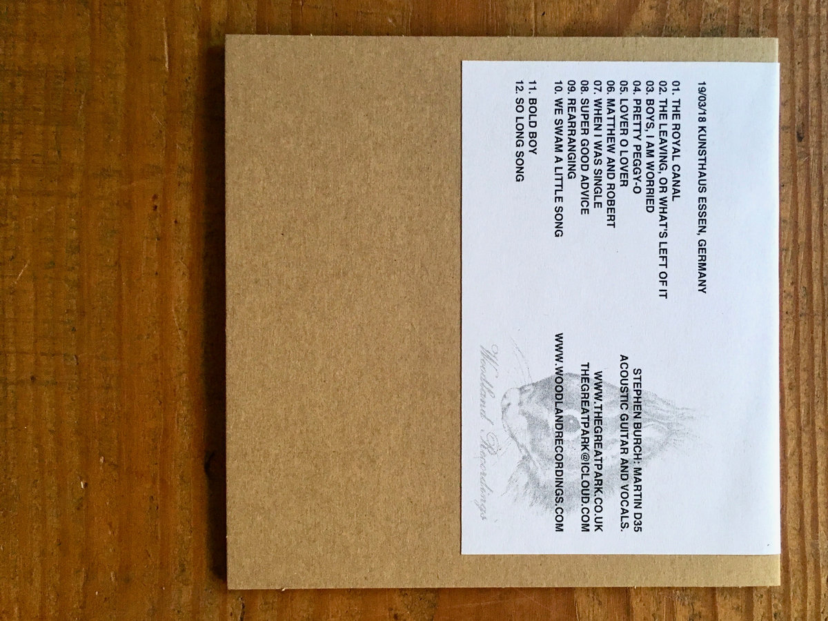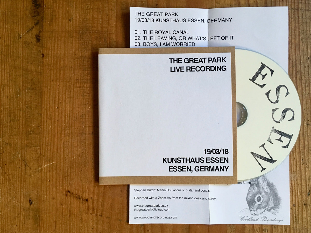 CDr and immediate download of the complete concert by The Great Park at Kunsthaus Essen on the 19th of March 2018.